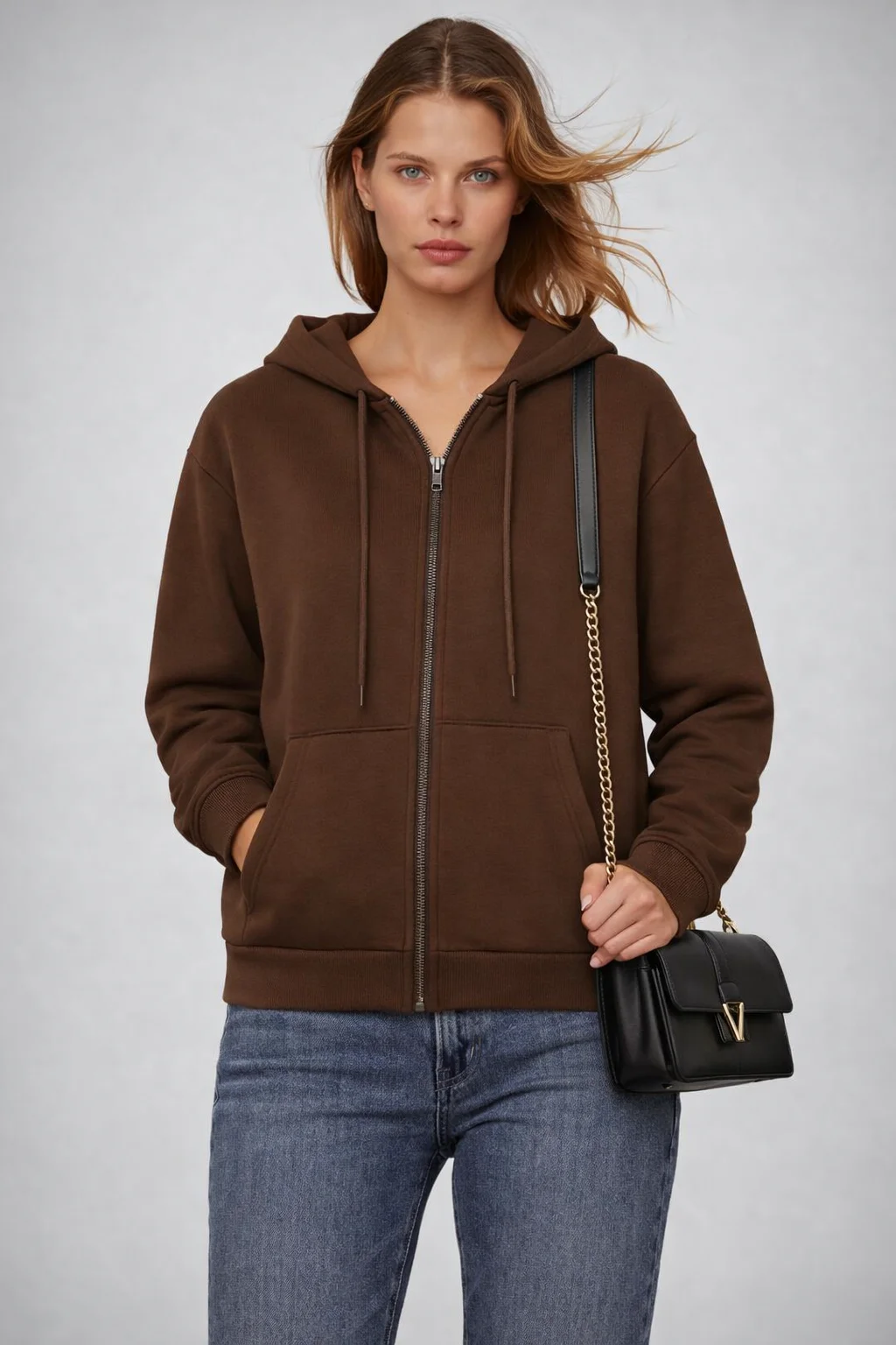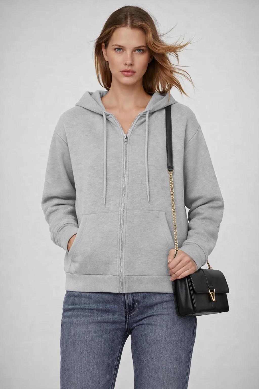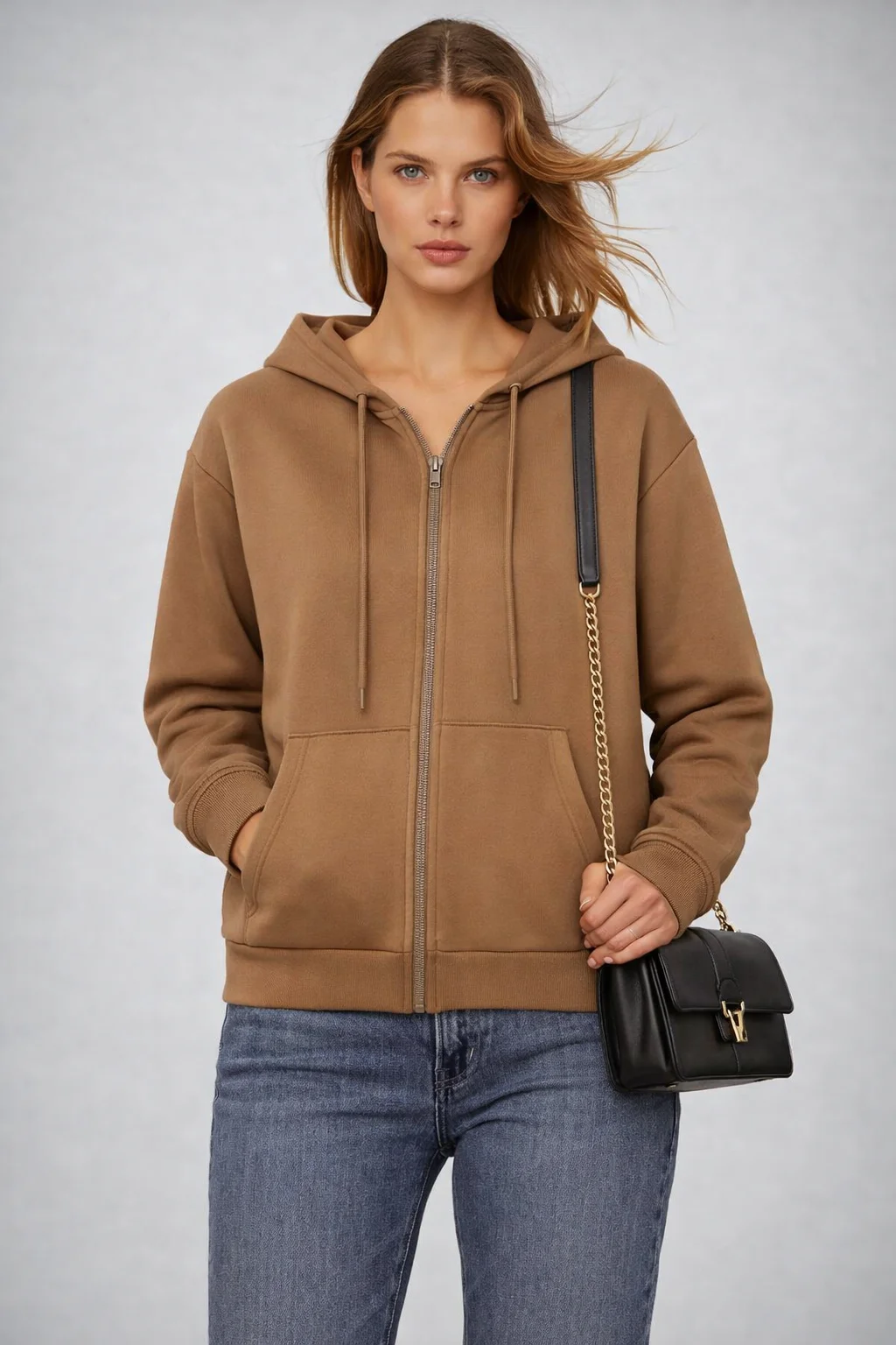 هودي حريمي سوستة بقبعة مصمم بأسلوب كاجوال شيك يناسب اللبس اليومي والخروجات. مصنوع من خامة تقيلة ناعمة ومريحة بتدي إحساس بالدفا مع الحفاظ على شكل أنيق وعصري. تصميم السوستة الأمامية بيسهّل اللبس والخلع، مع قبعة عملية للحماية من الهواء والبرد.