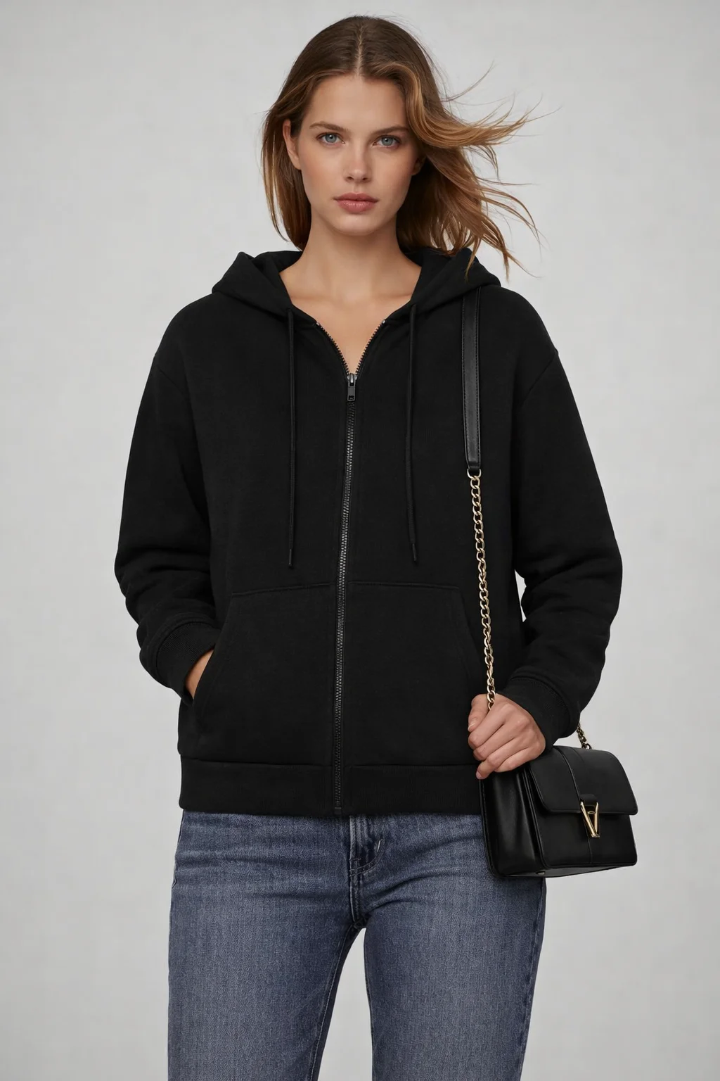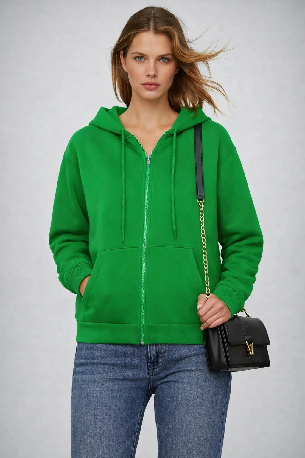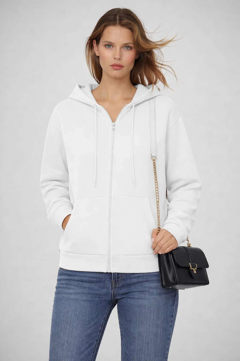 هودي حريمي سوستة بقبعة مصمم بأسلوب كاجوال شيك يناسب اللبس اليومي والخروجات. مصنوع من خامة تقيلة ناعمة ومريحة بتدي إحساس بالدفا مع الحفاظ على شكل أنيق وعصري. تصميم السوستة الأمامية بيسهّل اللبس والخلع، مع قبعة عملية للحماية من الهواء والبرد.