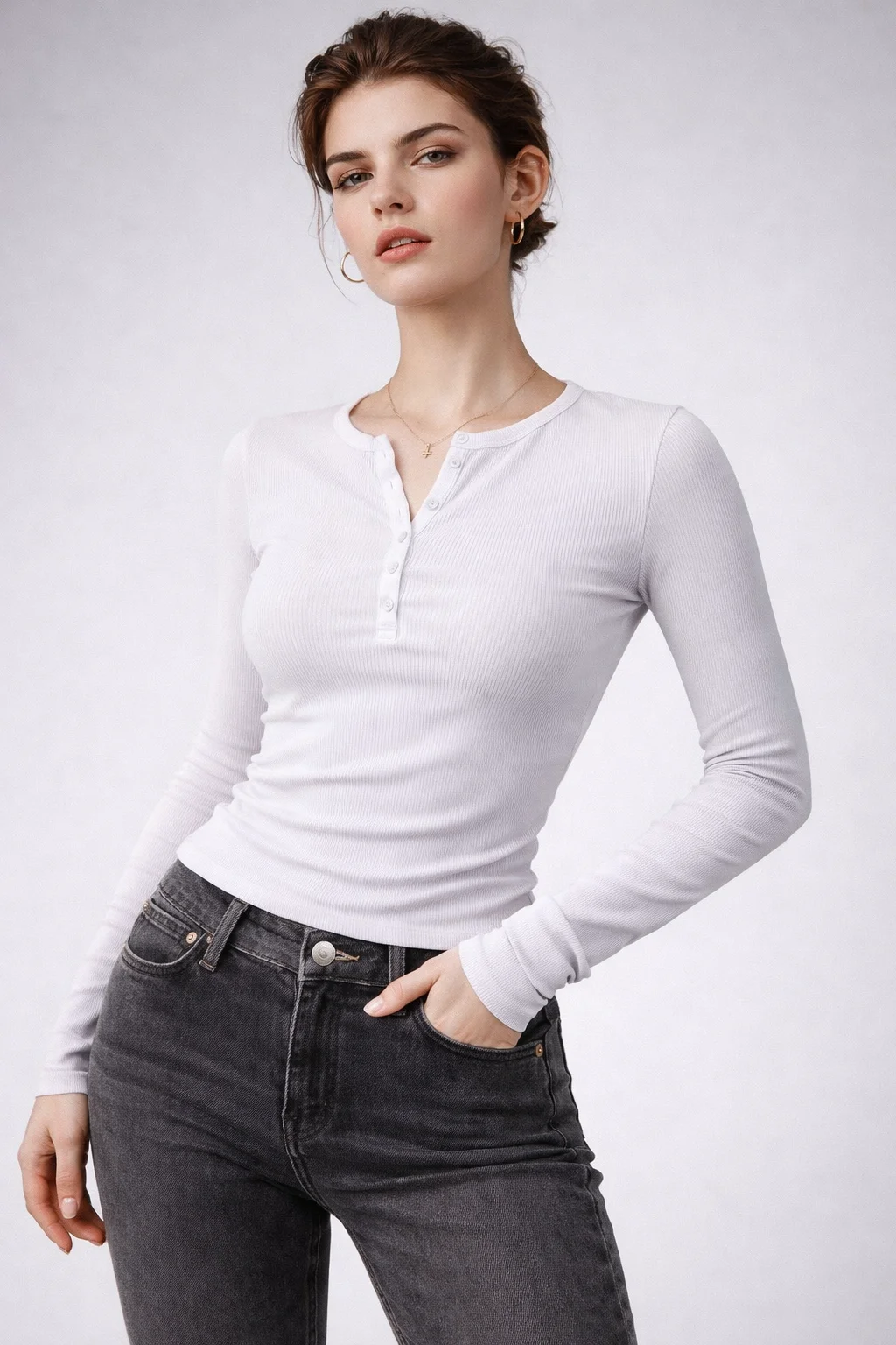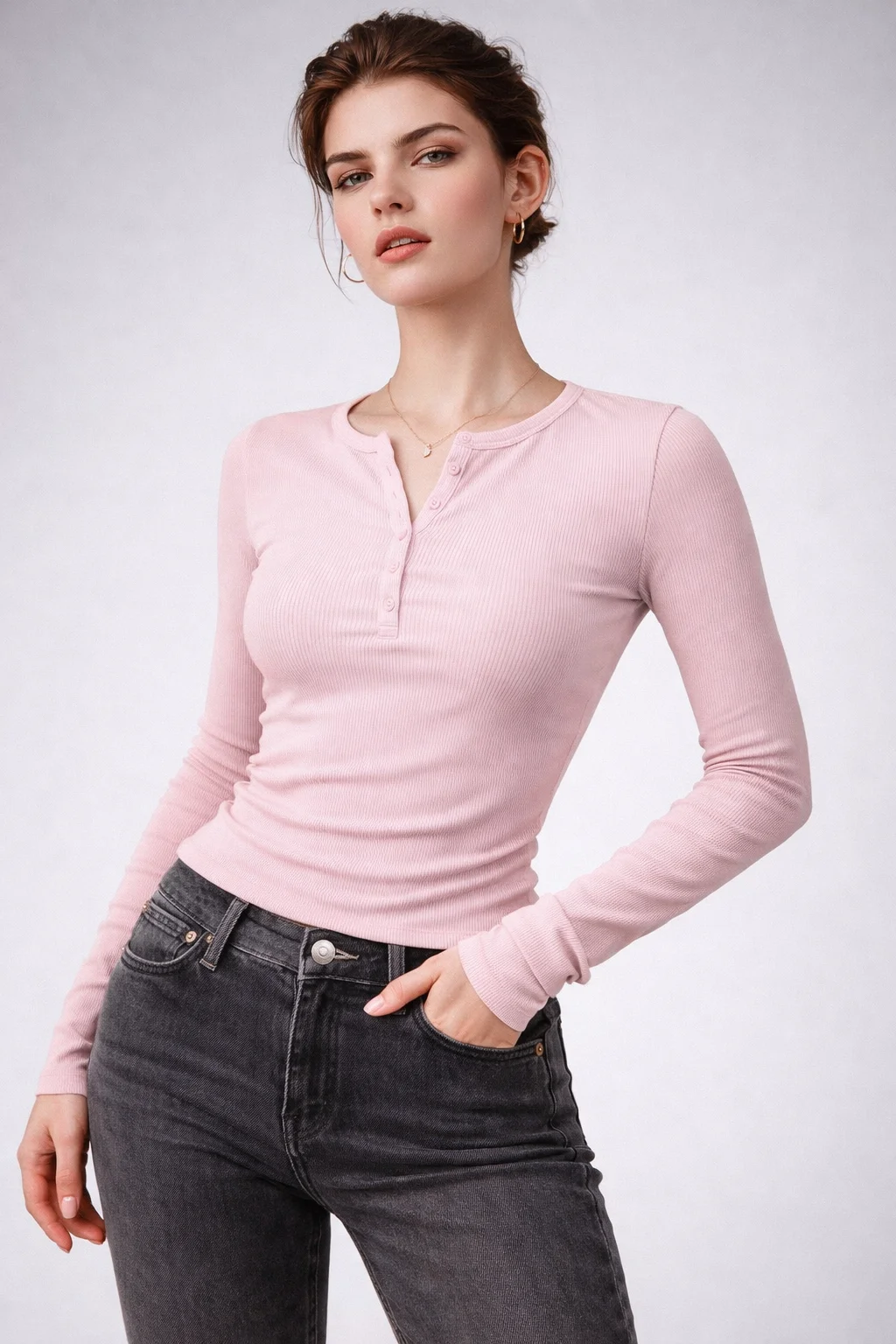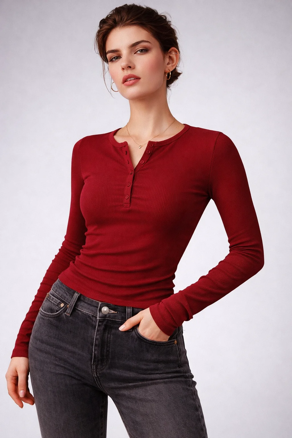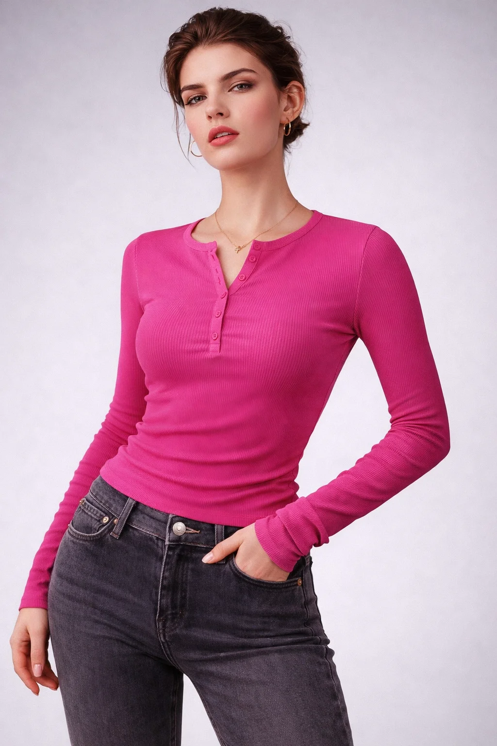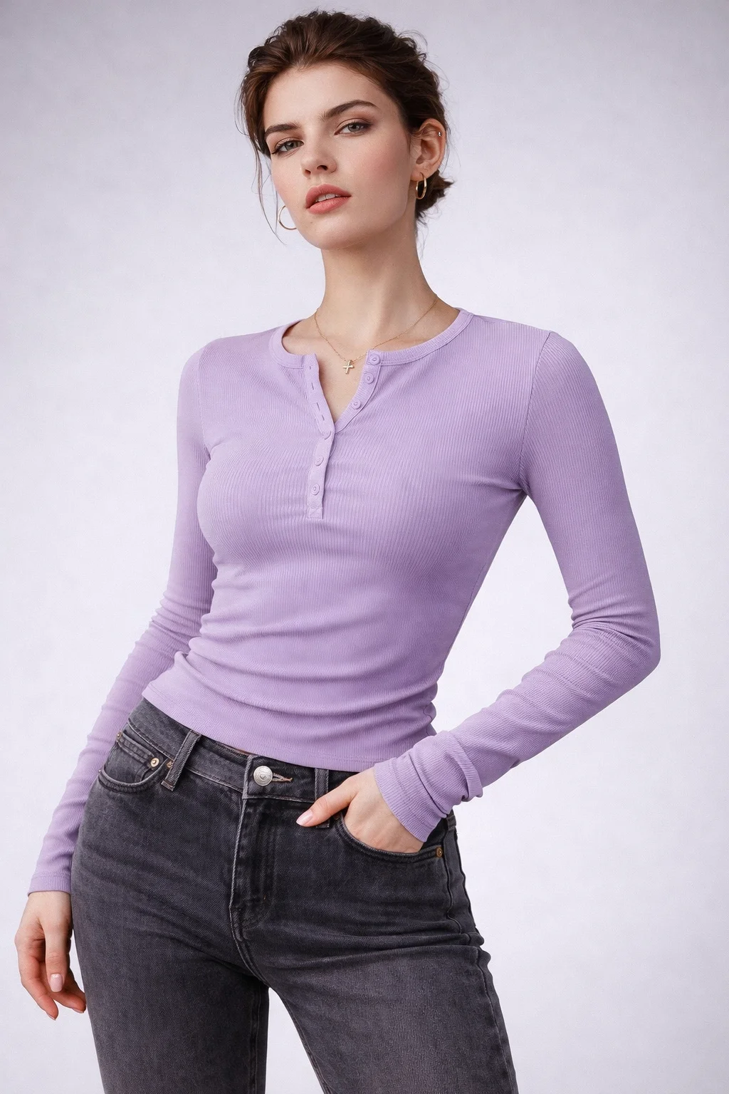تيشيرت حريمي، تيشيرت قطن مضلع، تيشيرت ليكرا، تيشيرت ماسك على الجسم، بلوزة حريمي، تيشيرت بأزرار، Henley Top، ملابس حريمي كاجوال، تيشيرت شتوي حريمي