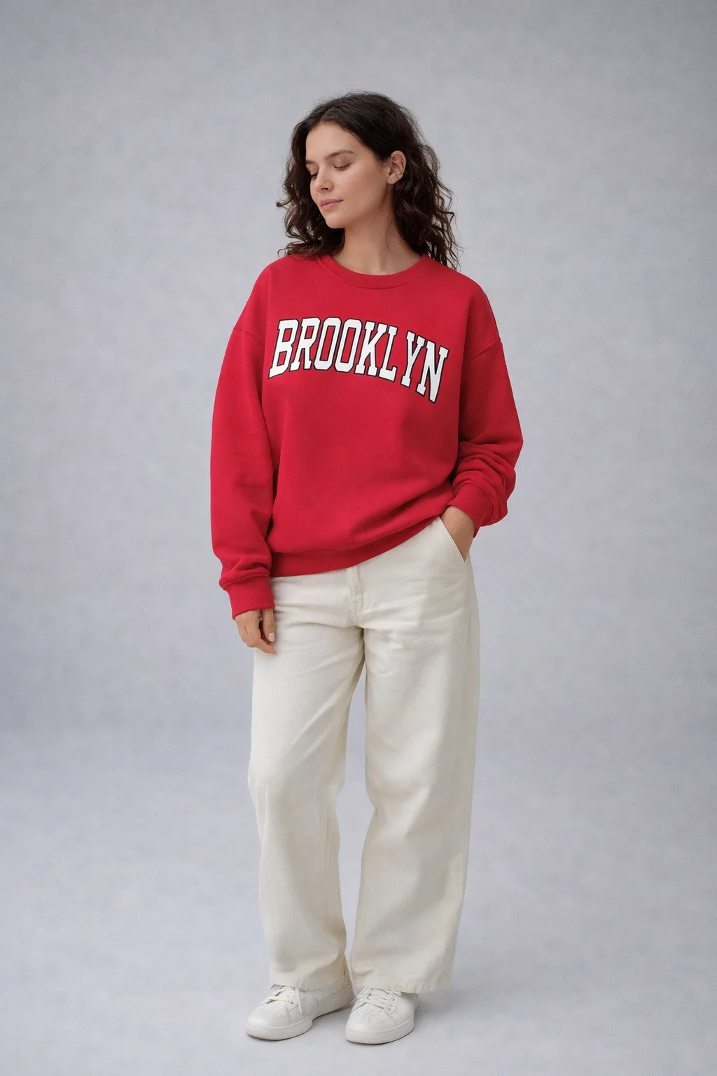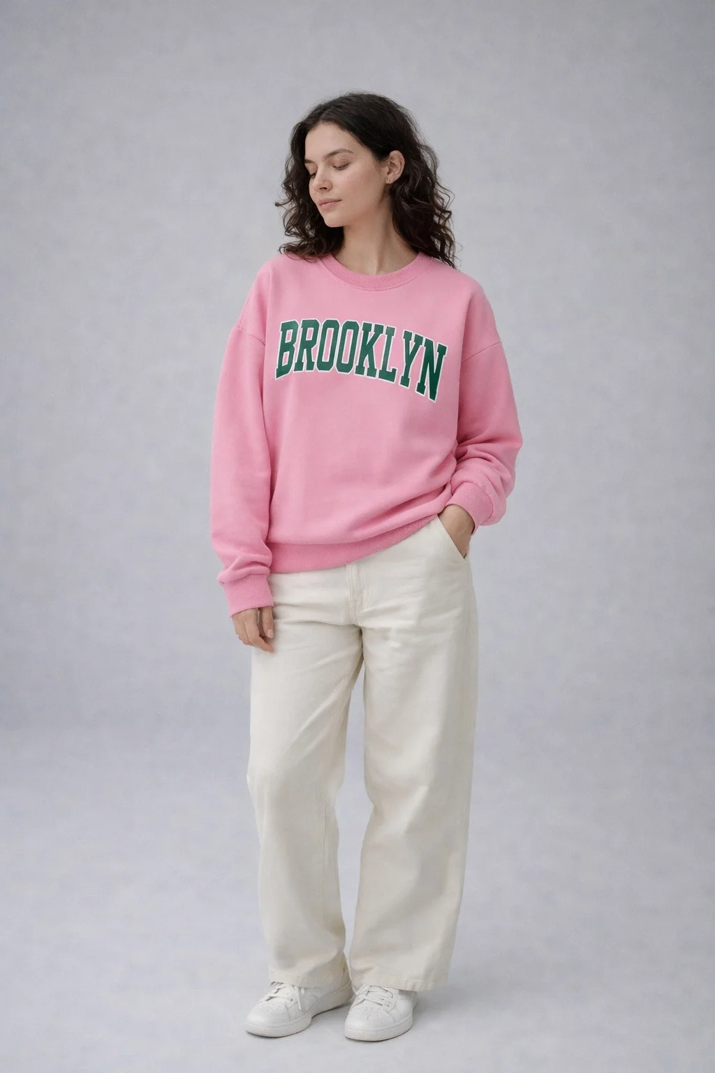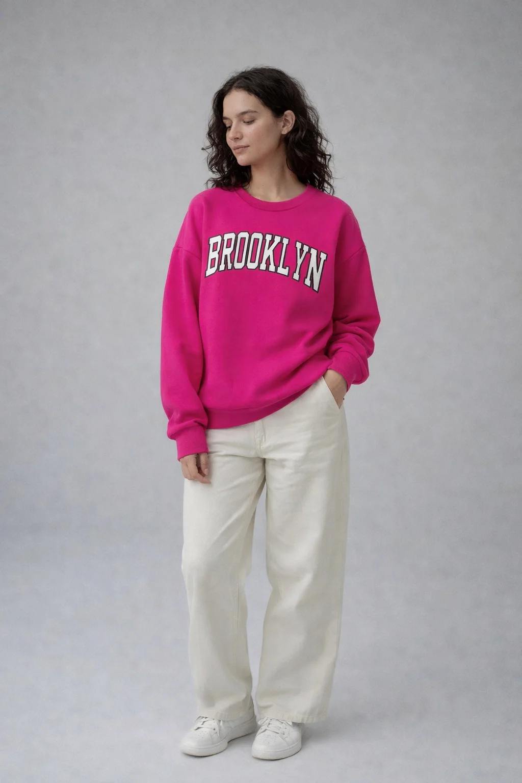 سويت شيرت Brooklyn أوفر سايز حريمي بتصميم عصري مستوحى من الستايل الأمريكي والجامعي، مناسب لكل محبي اللوك الكاجوال المريح والعملي. يتميز بقَصّة Oversize مريحة تناسب جميع أشكال الجسم، مع طباعة BROOKLYN بارزة تضيف لمسة تريندي قوية.